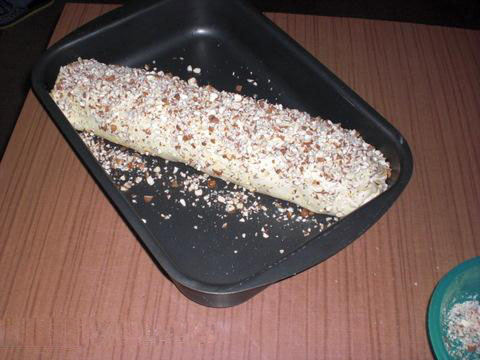 Se unge aluatul cu ou și se presară cu migdale.