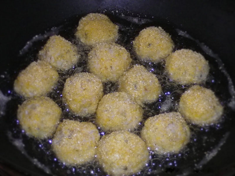Am pus și puțin pătrunjel după care am făcut chifteluțe, le-am tăvălit prin ou și pesmet și am dat la cuptor, câteva