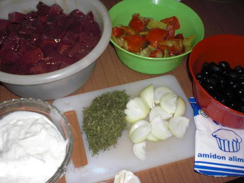 2-4 linguri amidon (făină), 250-400 ml smântână (am pus 300 ml), 2-4 linguri ulei, câte jumătate ardei roșu, sare, piper, boia. |