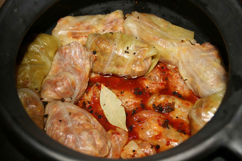 Se alege carne mai grasă de porc (pulpă, costiță, ceafă) și se trece o dată prin mașina de tocat. Altă variantă este să se toace atât carne de porc cât și carne de vită, în cantități egale. Carnea tocată se amestecă cu orezul curățat și spălat în câteva ape, ceapa tăiată cubulețe foarte mici, piperul, sarea, frunzele de dafin și 100 ml de apă. E foarte important adaosul de apă în umplutură.